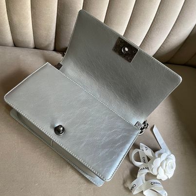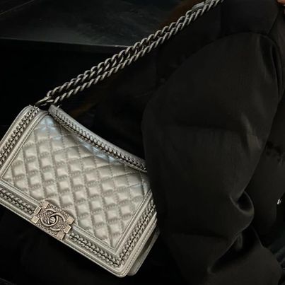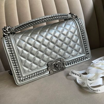 Chanel 銀色油蠟編織手柄handle boy 23開無卡 當年的高價款喔 尺寸25cm 肩帶油邊輕微擱置痕跡 不影響使用 甜價出上身高級買到賺到🤍