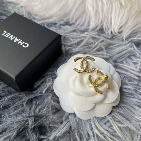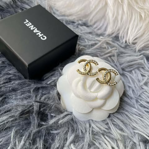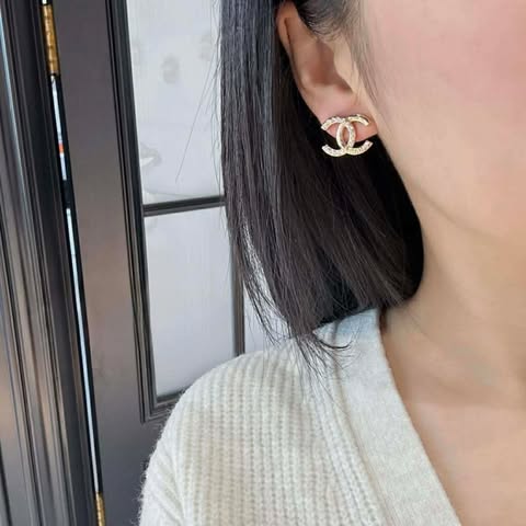 Chanel 雙C半鑽字母耳針