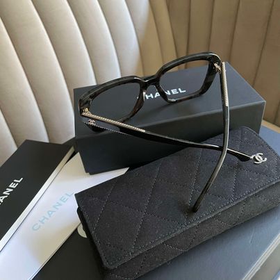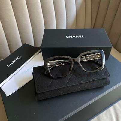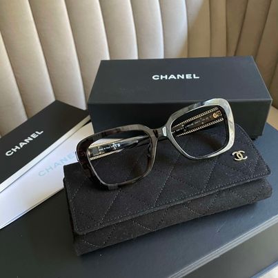 Chanel 黑金印花粗框鍊條邊平光眼鏡 全配件台灣購證 細節都做的很美🖤 闆娘把鏡片拿下來~僅戴過一次
