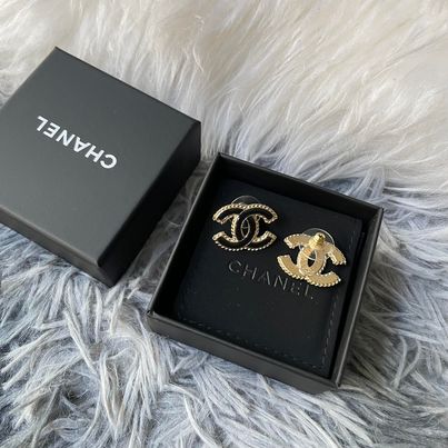 Chanel 黑金琺瑯耳針 全新全配台灣購入 2cm