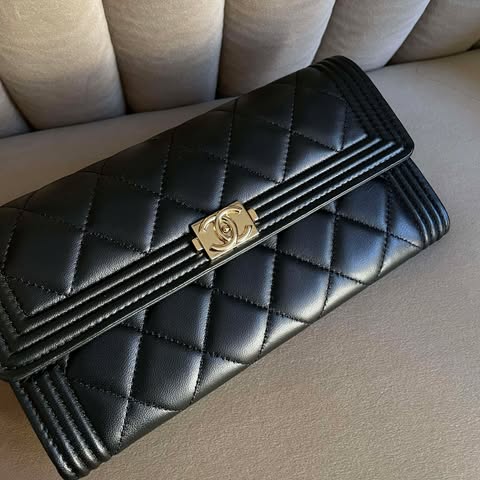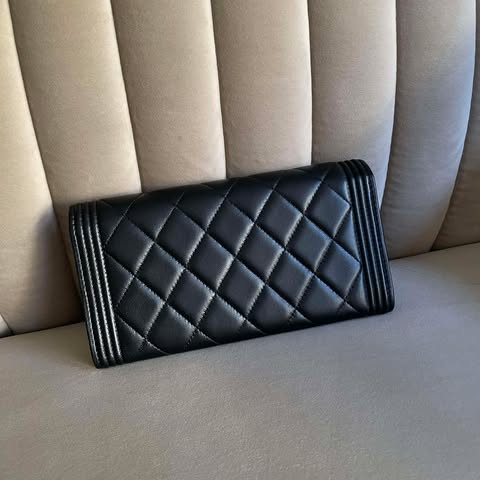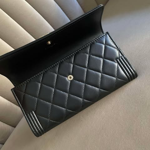 Chanel 黑金羊皮boy信封長夾