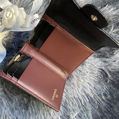 Chanel 黑金荔枝三折卡包