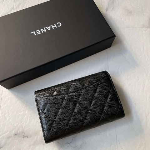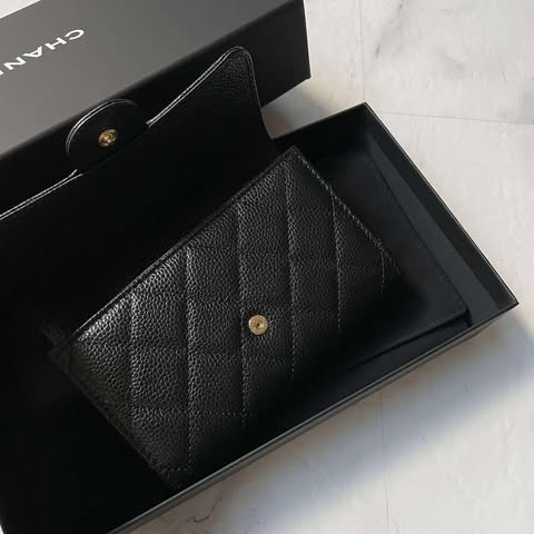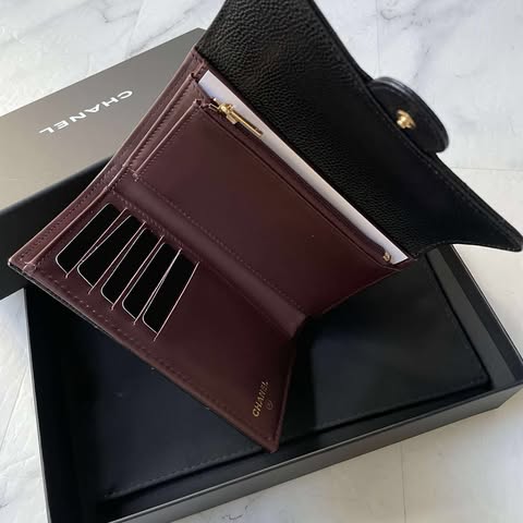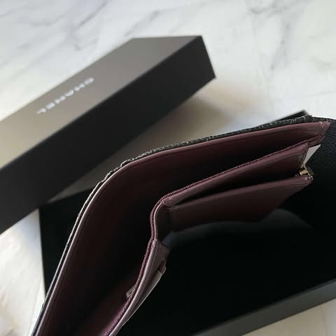Chanel 黑金荔枝經典三折中夾 全新芯片款配件有塵袋盒子型號標 台灣購入 尺寸15cm 鈔票可平放