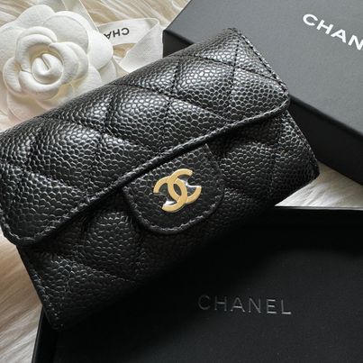 Chanel 黑金荔枝經典卡包 全新全配台灣購證 Walk in 進專櫃也不好拿到的小皮件 現貨秒發~