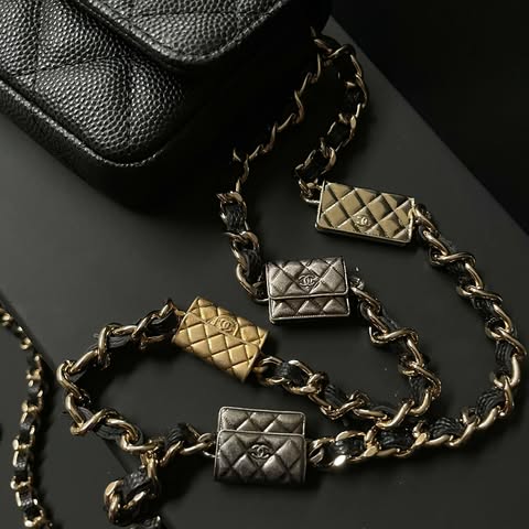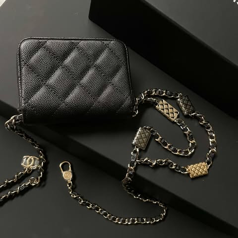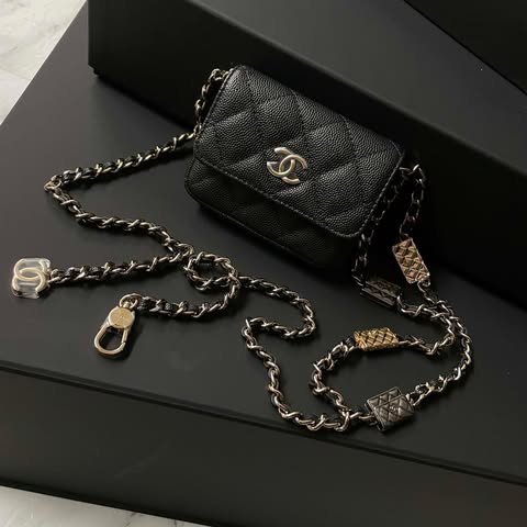 Chanel 黑金荔枝金屬cf 鏈條小包