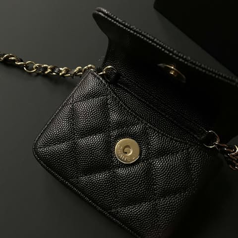 Chanel 黑金荔枝金屬cf 鏈條小包 太精緻了值得收藏 吸釦式開口 31開全新全配購證影本