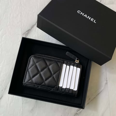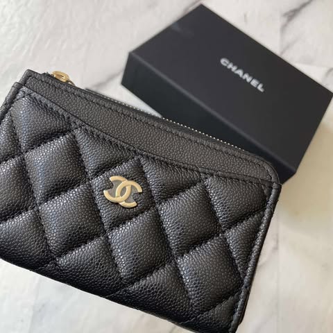 Chanel 黑金荔枝L拉零錢卡包