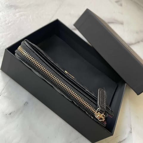 Chanel 黑金荔枝L拉零錢卡包 全新配件有塵袋盒子 尺寸13*8.5cm 鈔票對折一次即可~