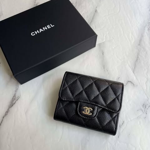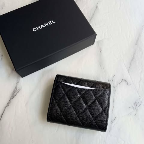 Chanel 黑金荔枝mini短夾 全新全配 台灣購證 零錢袋在裡面 也是超難買的一款!