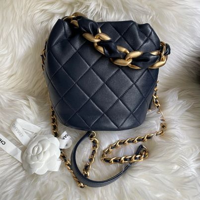 Chanel 2021春夏秀款海軍藍孟買水桶包 全新未使用🖤 31開有卡有袋 尺寸16/18/12 本身做仿舊金屬 ☑️☑️