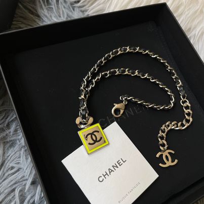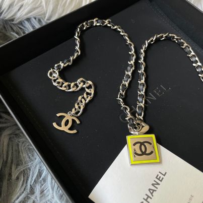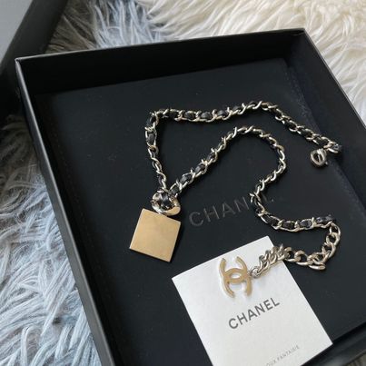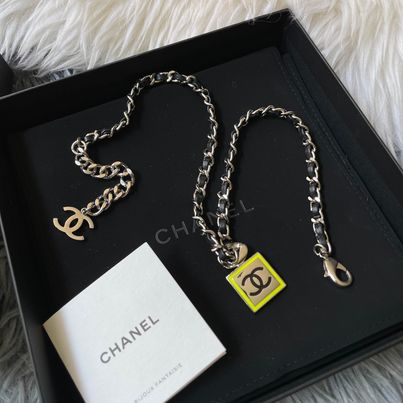 Chanel 21b黑銀編織方塊鏡面choker 配件盒子 購證沒留 會附上當時買的退稅單據之類的 男女都可搭 非常不錯的單品