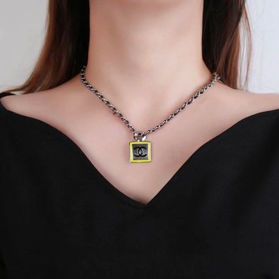 Chanel 21b黑銀編織方塊鏡面choker