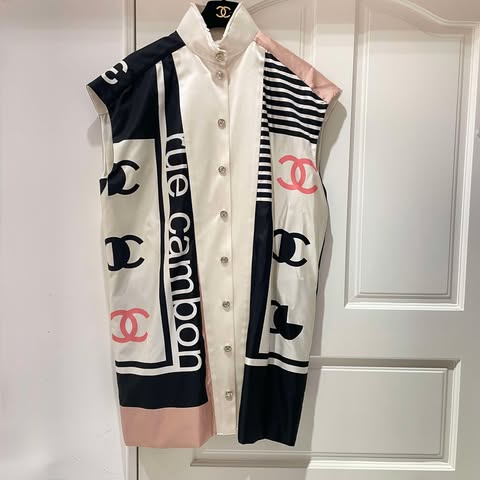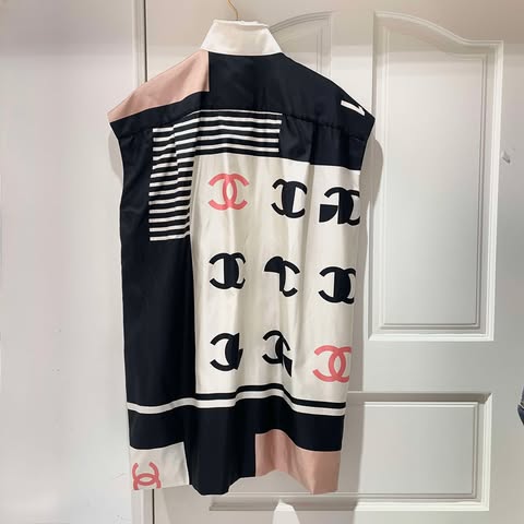 Chanel 21s 拼色長版背心洋裝/開衫 36號 可當洋裝或外套 全長84.5cm 100%絲質 手感非常親膚舒服