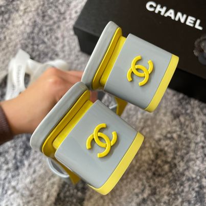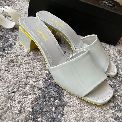 全新全配36半 Chanel 22年春夏款拼色低跟拖鞋