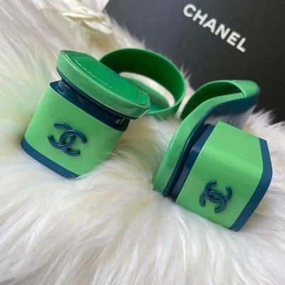 Chanel 22春夏拼色低跟拖鞋 37號全新全配 這拼色真的很美