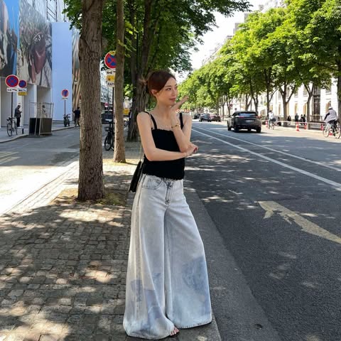 Chanel 22春夏麋鹿獅子印花牛仔闊腿褲