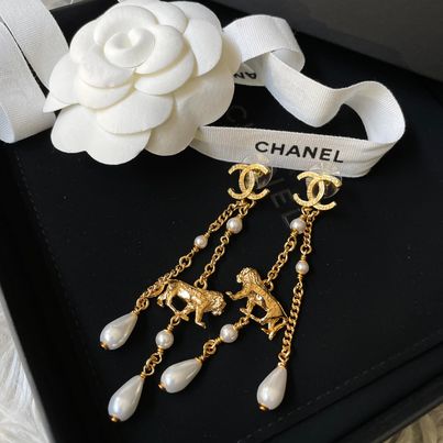 Chanel 22a 獅子珍珠垂吊耳針 全新全配 整個做工太精緻太美了🥺🥺🥺