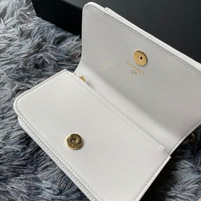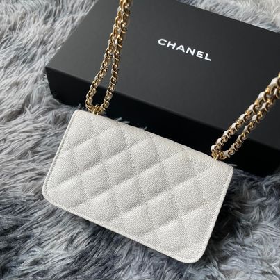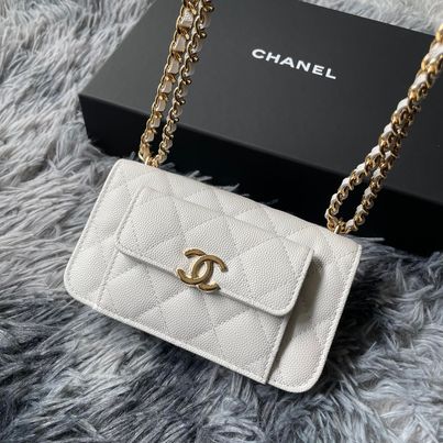 Chanel 22a 白金荔枝口袋mini woc 全新全配 芯片款袋盒購證 台灣購入 尺寸15/8/3