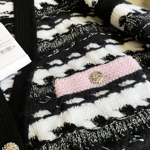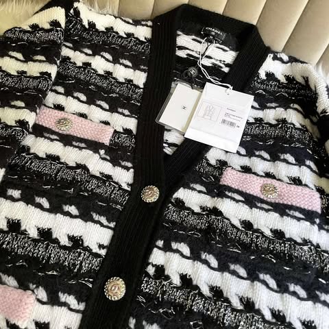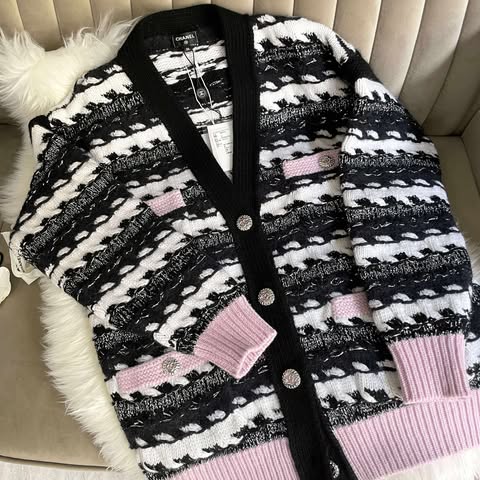 Chanel 22b 粉白條紋針織毛呢開衫外套