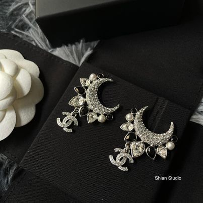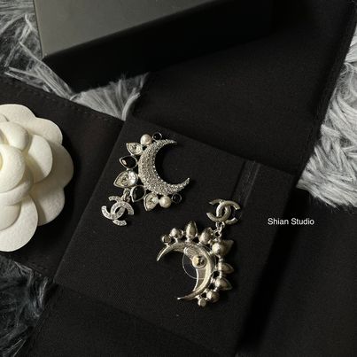 Chanel 22c珍珠水鑽月亮耳針 全新全配 原價高價款✨