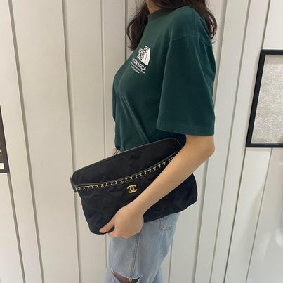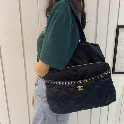Chanel 22P尼龍鏈條小托特 31開卡袋盒購證影本大全配 超級輕巧好用的購物包 還可以當手包使用