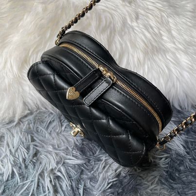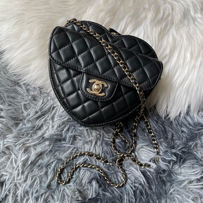 Chanel 22s秀款黑金羊皮愛心包 芯片款🤍配件塵袋 好成色喔🫶🫶現貨甜價走!! 尺寸16/18/6 可以放手機