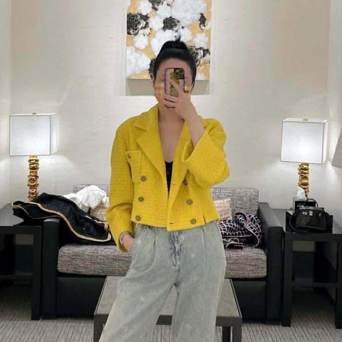Chanel 22s 檸檬黃針織毛呢短版西裝外套