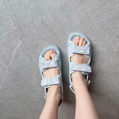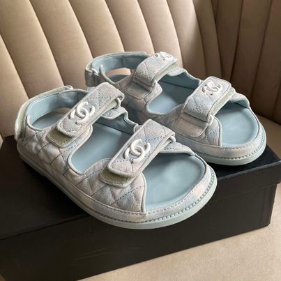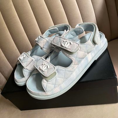Chanel 23a 藍天白雲漸層魔鬼氈涼鞋
