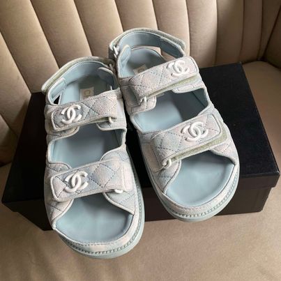 Chanel 23a 藍天白雲漸層魔鬼氈涼鞋 37號 配件塵袋 已經加好底可直接穿啦~ 現在專櫃類似款5-6萬
