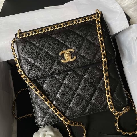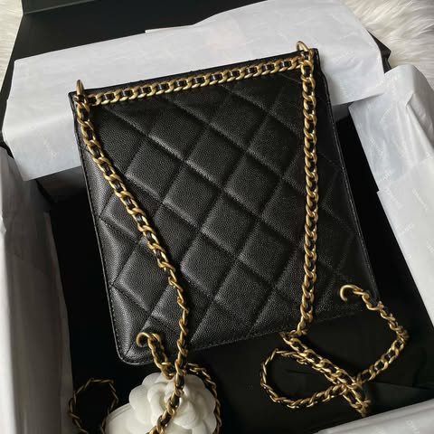 Chanel 23a 黑金荔枝鏈條後背包