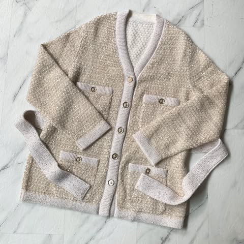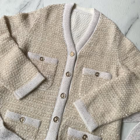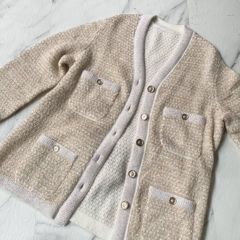 原價近20w Chanel 23b秋冬亮片綁帶針織開衫外套 主標&洗標已剪 這件一眼就愛上😍😍 實品真的太美啦~ 肩39 袖長57.5 胸52 衣長68