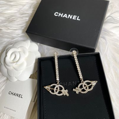 Chanel 23c 一箭穿心水鑽耳針 全新有盒有購證💘💘