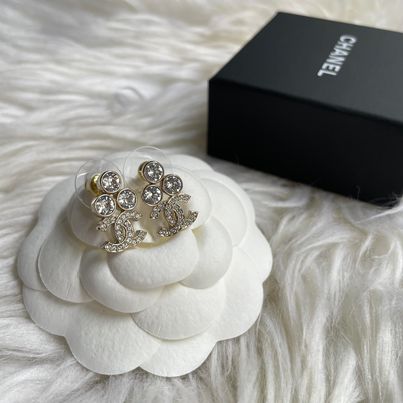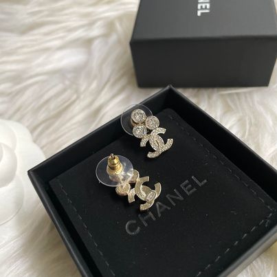 Chanel 23p 雙c水鑽貼耳小耳針 全新全配 日本購入 尺寸1.5*0.8cm