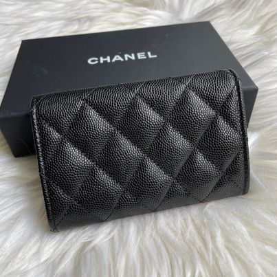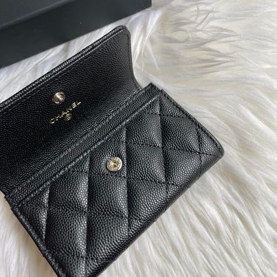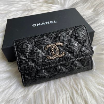 Chanel 23p 黑金荔枝鏤空大c卡包