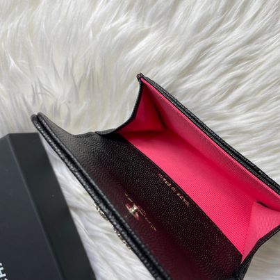 Chanel 23p 黑金荔枝鏤空大c卡包 芯片款有袋盒 日本購入 內裡做桃粉色~ Logo簡直不要太好看!