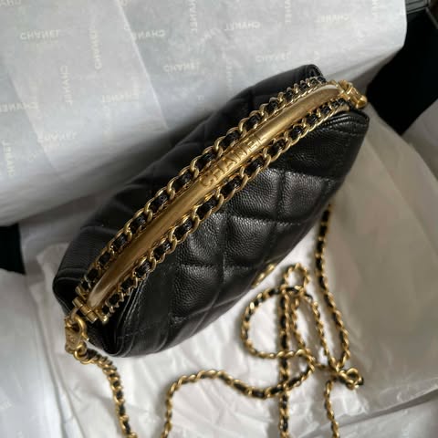 原價159200⚠️⚠️ Chanel 24a黑金荔枝編織字母飯盒包 閒置芯片款全配件 尺寸18.5*14*7cm 鏈條可拆卸 容量不錯的喔 最重要的是pro max加殼輕鬆放入