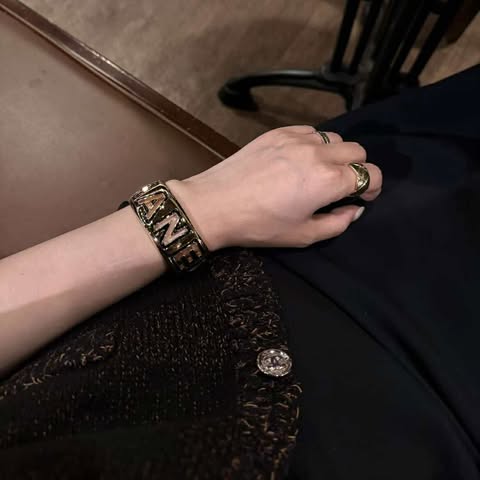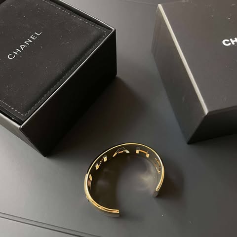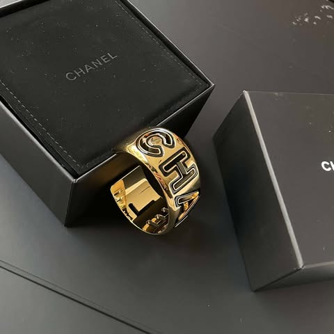 Chanel 24a 黑金字母琺瑯鏤空手鐲