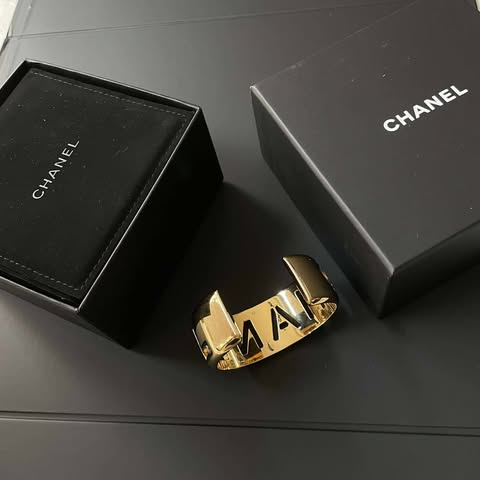 Chanel 24a 黑金字母琺瑯鏤空手鐲 全新配件有盒子 M碼必收!!!! 太時髦了 冬天疊戴也好美 原價得46000左右