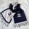 Chanel 24b深海藍雙面圍巾 全新全配澳洲購證 100%羊毛 尺寸180*35cm