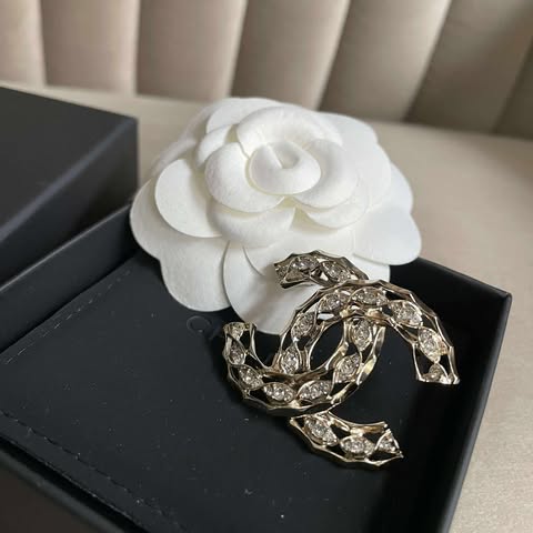 Chanel 24b鏤空感淡金水鑽胸針 全配件日本購證 尺寸4.5*3.3cm 大漂亮一枚 實物更美😚