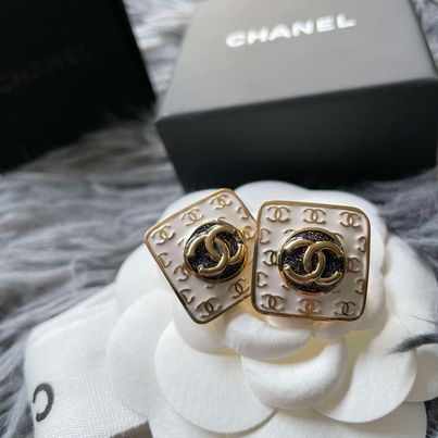 Chanel 24c 黑白滿logo方塊耳針