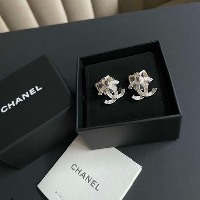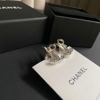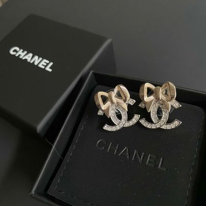 Chanel 24k 金銀水鑽蝴蝶結耳針 全新全配台灣購證 很別緻像公主的感覺👸🏼