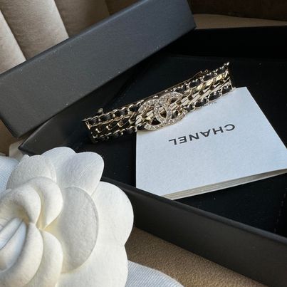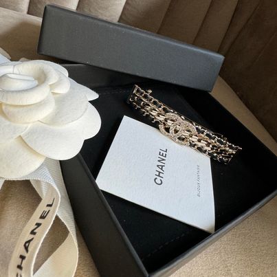 Chanel 24p 黑金編織水鑽髮夾 全新全配台灣購入 真的很美 一起變成精緻girl吧🥨