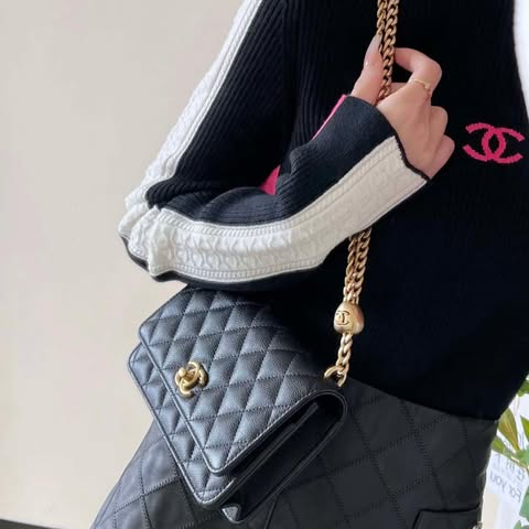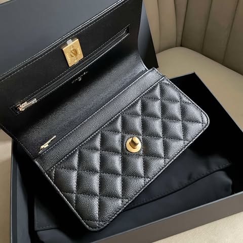 Chanel 24p 黑金荔枝愛心調節woc 全新全配 值得入手的系列 可以調節+黑金荔枝牛皮🖤完美組合
