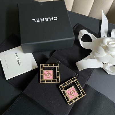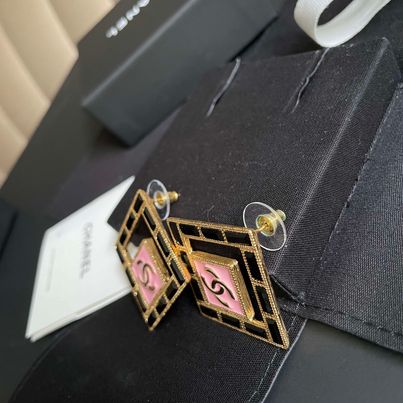 Chanel 24s 秀款粉黑麥穗耳針 全新全配台灣購證 尺寸3.2*3.2cm