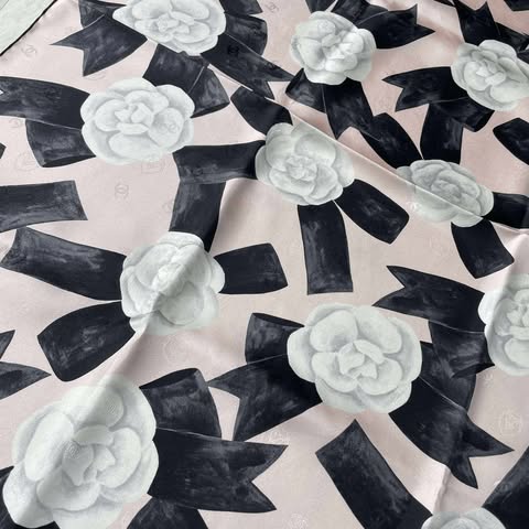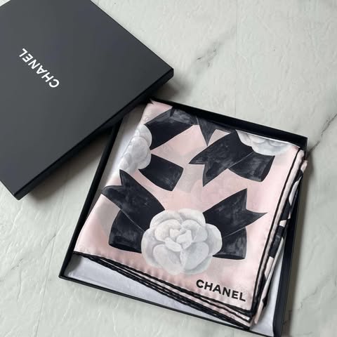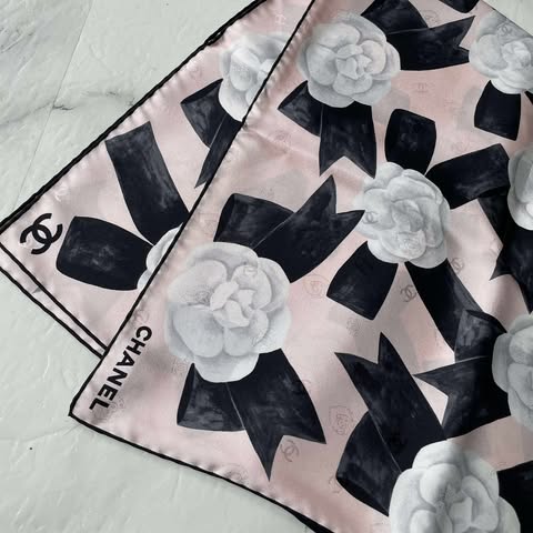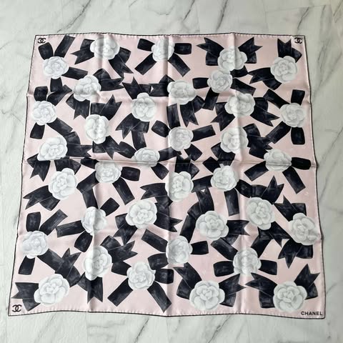Chanel 25a山茶花蝴蝶結方巾 全新全配香港購證 淺淺的粉色 個人認為這季最美的一條 尺寸90*90cm 細節超級美