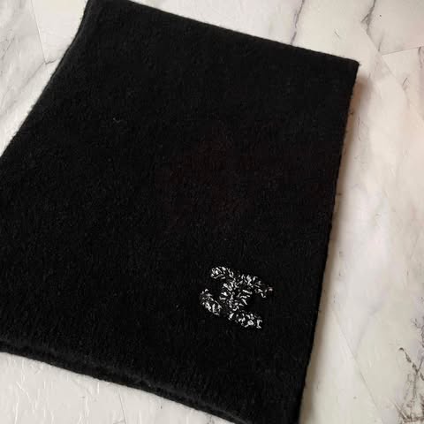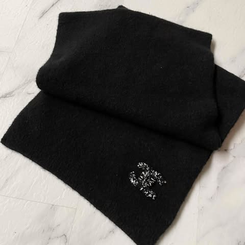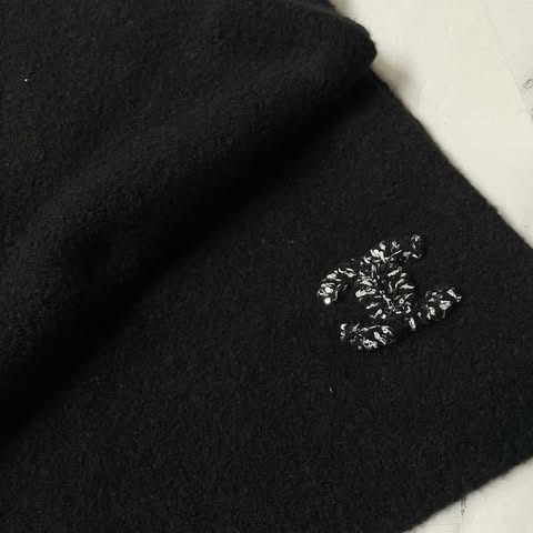 Chanel 25a黑色毛呢亮片針織圍巾 2025.12月台灣購證型號標 出國用過一次 購入5萬 67%cashmere 有彈力很厚實