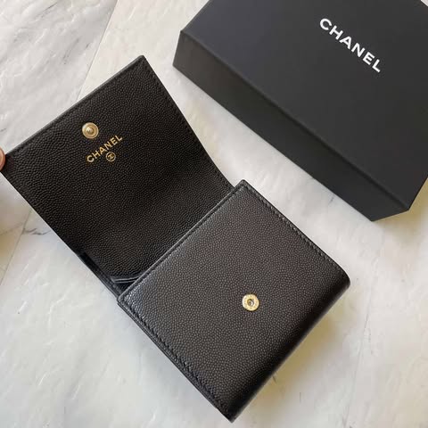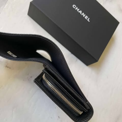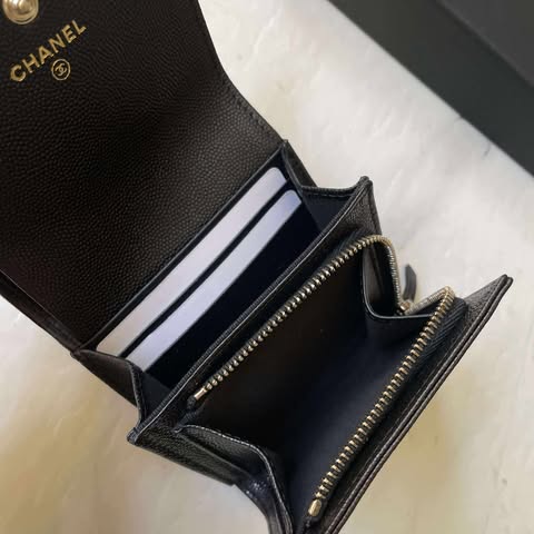 Chanel 25a 黑色魚子醬荔枝新款L拉短夾 全新配件有塵袋盒子 鈔票夾層在側邊可平放 空間隔層很大可以放多卡跟零錢