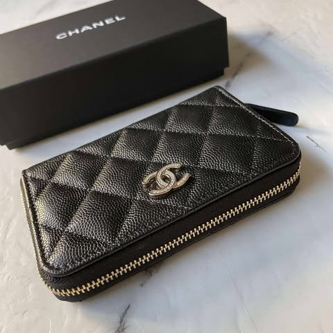 Chanel 25b 黑金荔枝水鑽加大版零錢卡包 全新全配 尺寸12*8cm 有拉鏈夾層更實用囉 櫃上33000 省錢帶走