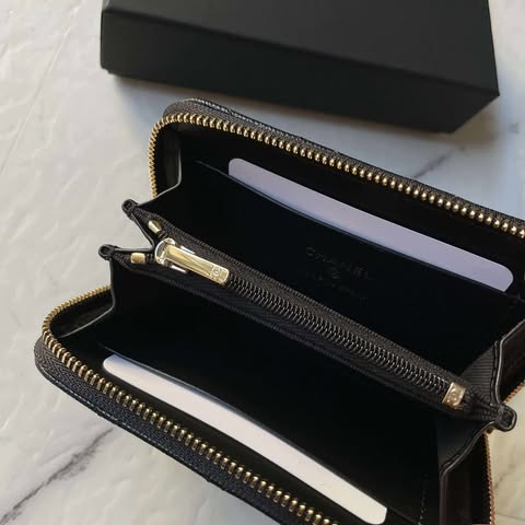 Chanel 25b 黑金荔枝水鑽加大版零錢卡包